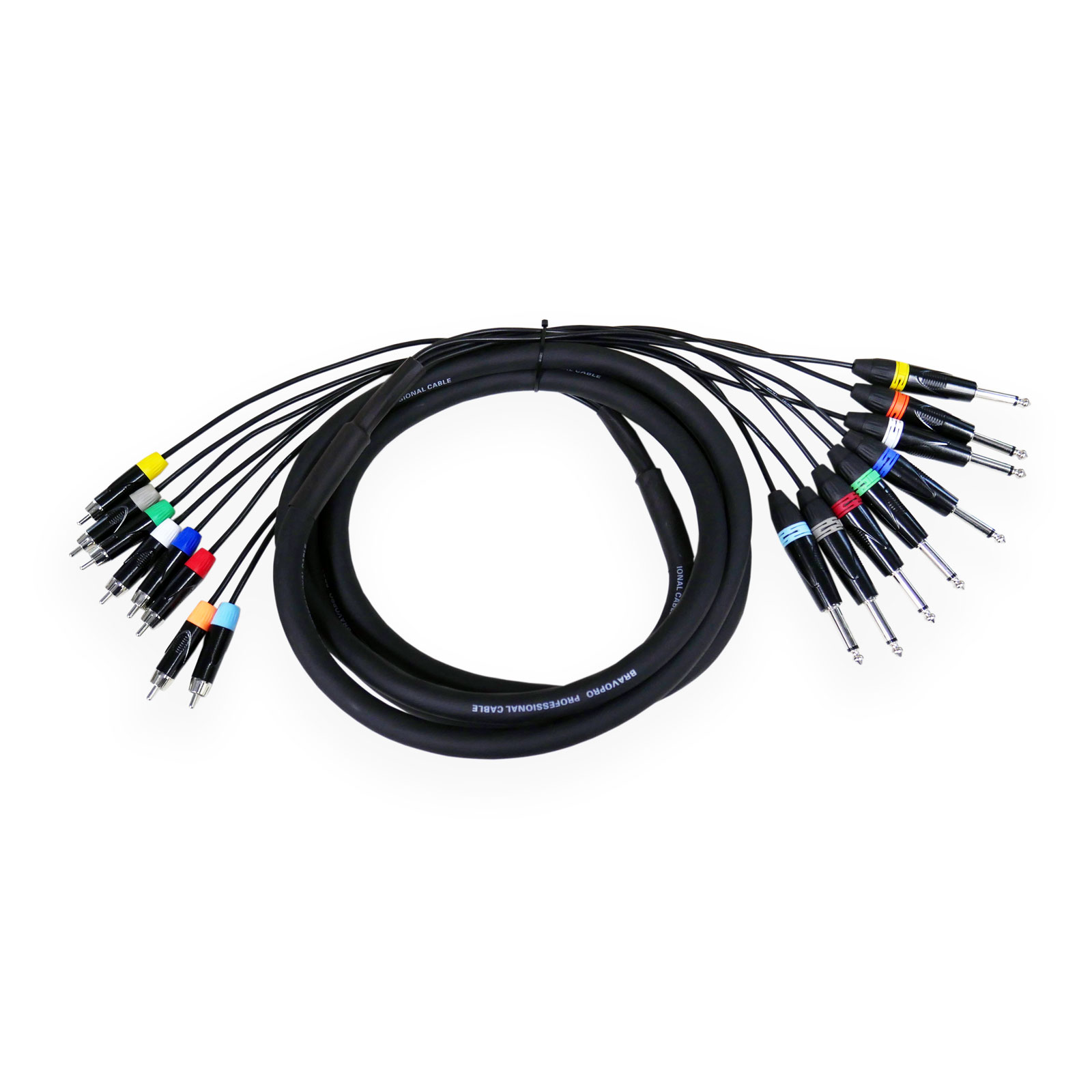 BravoPro PM007B-03 3M 8-way Multicore 6.35mm TS Jack Plug to RCA Male